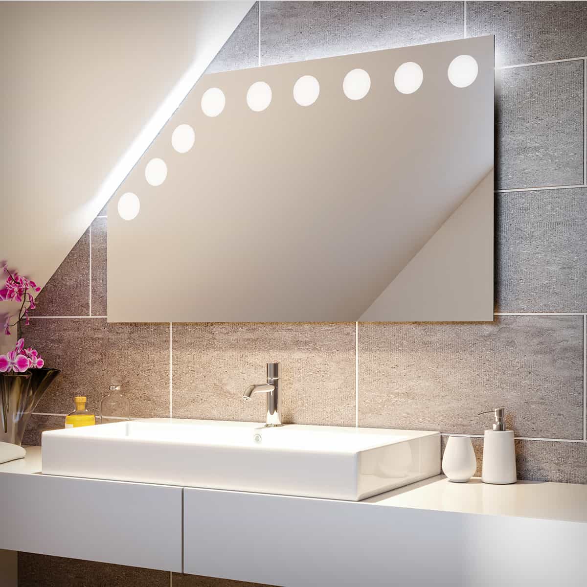 Badspiegel mit LEDs für Dachschräge – Hollywood oben