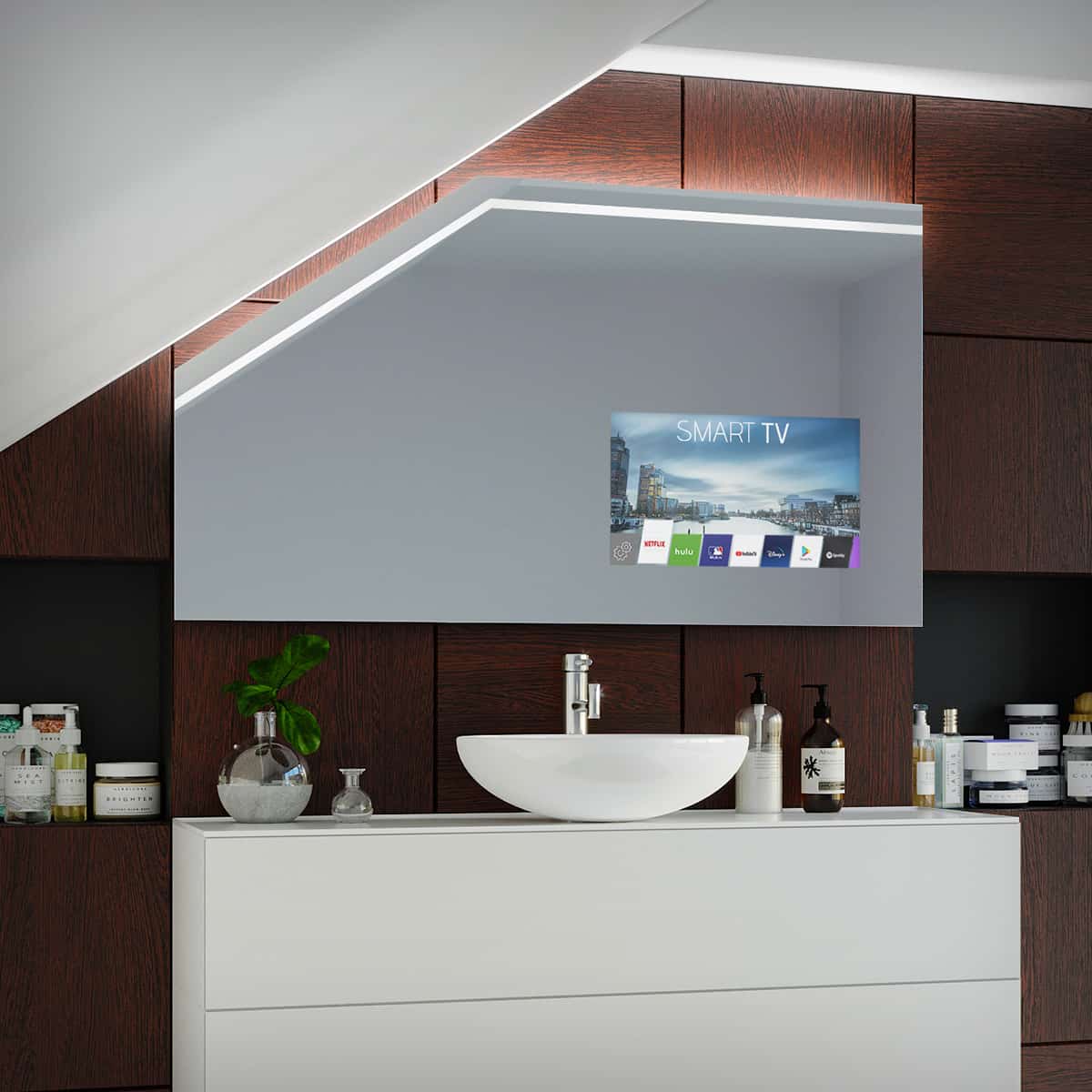 beleuchteter TV Badspiegel für Dachschräge – Viela oben