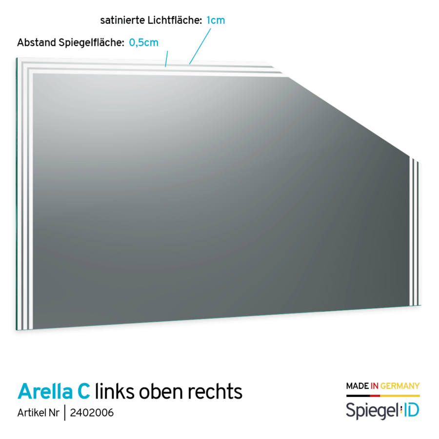 Der LED Spiegel Arella C ist speziell für Badezimmer mit Dachschrägen entwickelt worden. Durch seine schräg angeordneten Kanten, die von einem energiesparenden LED-Lichtband beleuchtet werden, sorgt dieser Spiegel für eine optimale Beleuchtung im Bad. Die rahmenlose Konstruktion und die hochwertigen Materialien machen den Spiegel zu einem modernen Designelement in jedem Badezimmer. Dank der feuchtigkeitsresistenten Eigenschaften des Spiegels ist eine lange Haltbarkeit garantiert. Der Arella C ist in verschiedenen Größen erhältlich und kann nach Maß angefertigt werden, um perfekt in jedes Badezimmer mit Dachschräge zu passen.